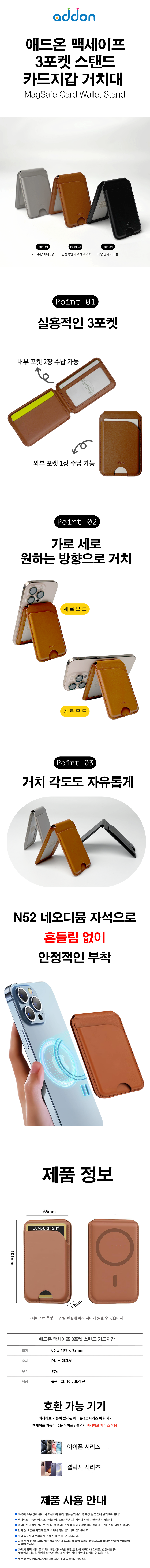 애드온 2in1 맥세이프 카드지갑 카드3장 수납 각도조절 거치대