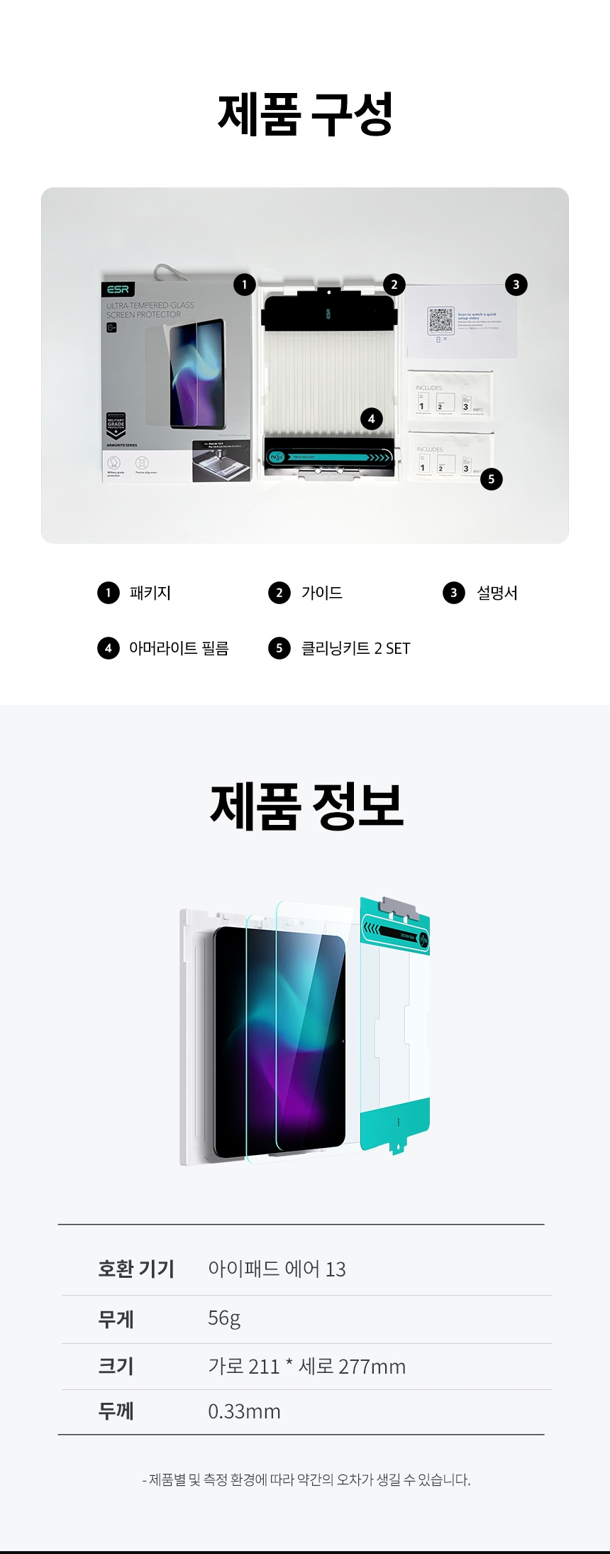 ESR 아이패드 에어13 아머라이트 강화유리 2팩
